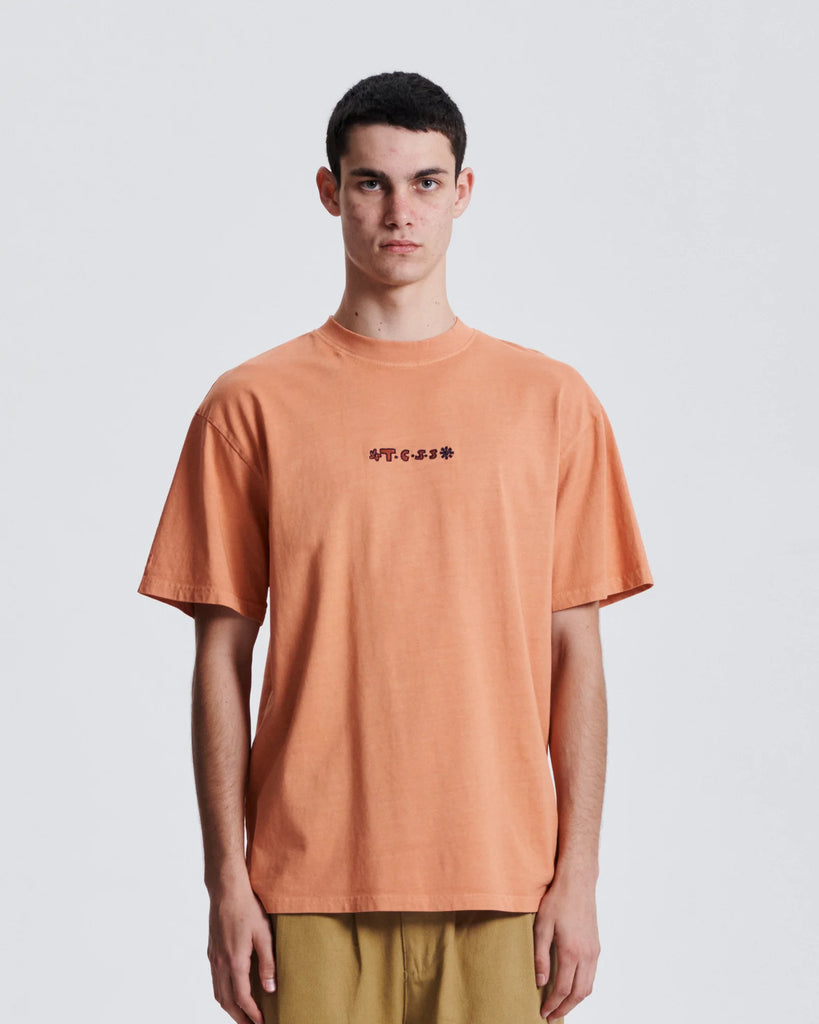 The Critical Slide Society(TCSS)のアイコニックなデザインと、落ち着いたピーチカラーが融合したTシャツ。しっかりとした厚手のコットン生地を使用し、フロントの刺繍とバックのアートワークで、シンプルながらも印象的なスタイルを演出します。